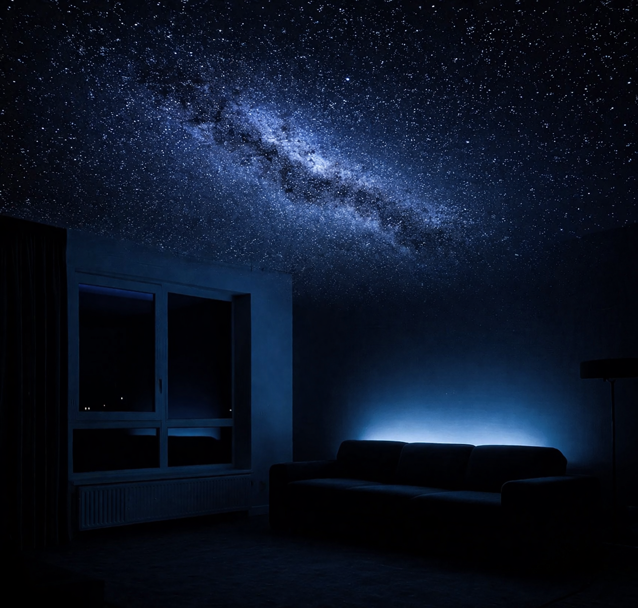 Esta mini lámpara crea un efecto galaxia increíble en el techo. La luz es muy bonita y relajante, perfecta para ambientar cualquier habitación. ¡Queda espectacular!